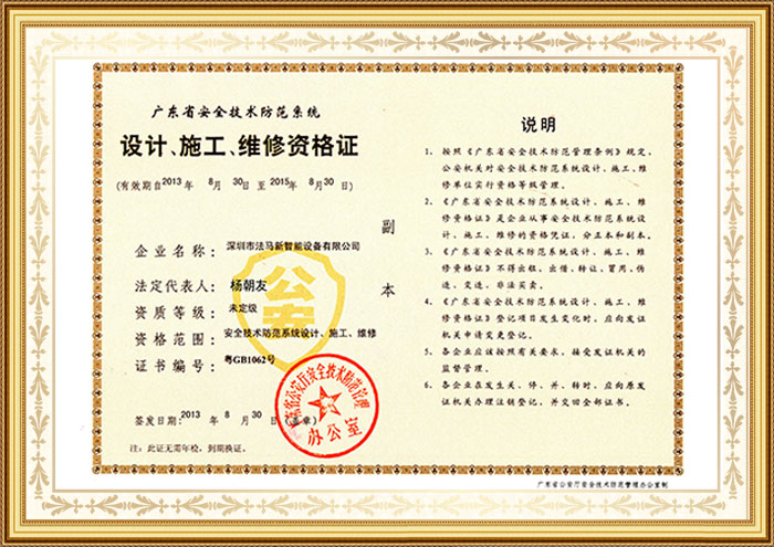 廣東省安全技術防范系統(tǒng)設計施工資格證