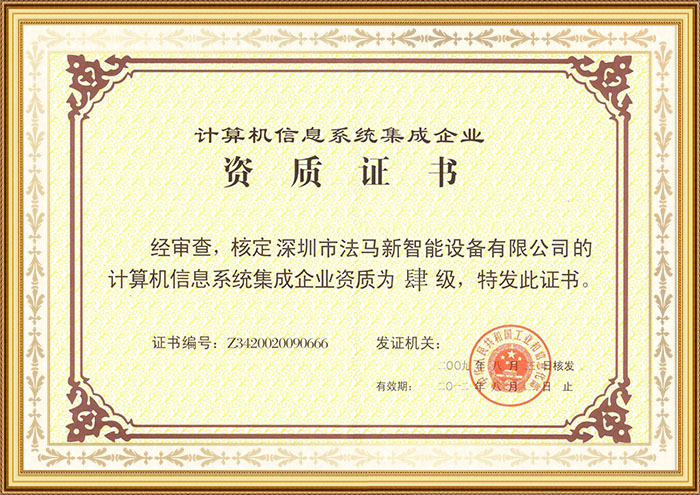 計算機信息系統(tǒng)集成企業(yè)資質證書