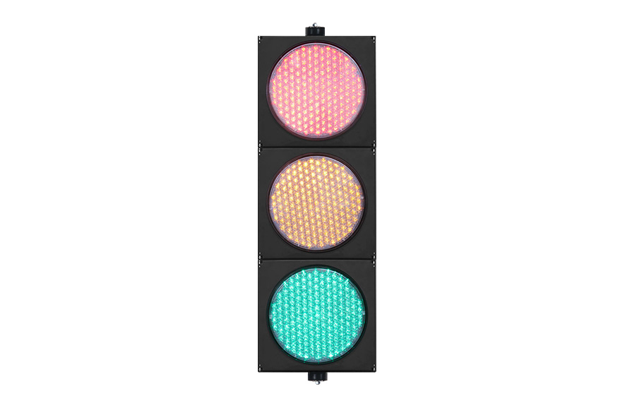 是由紅色、黃色、綠色三個(gè)無圖案圓形單位組成的一組燈,指導(dǎo)機(jī)動(dòng)車通行。