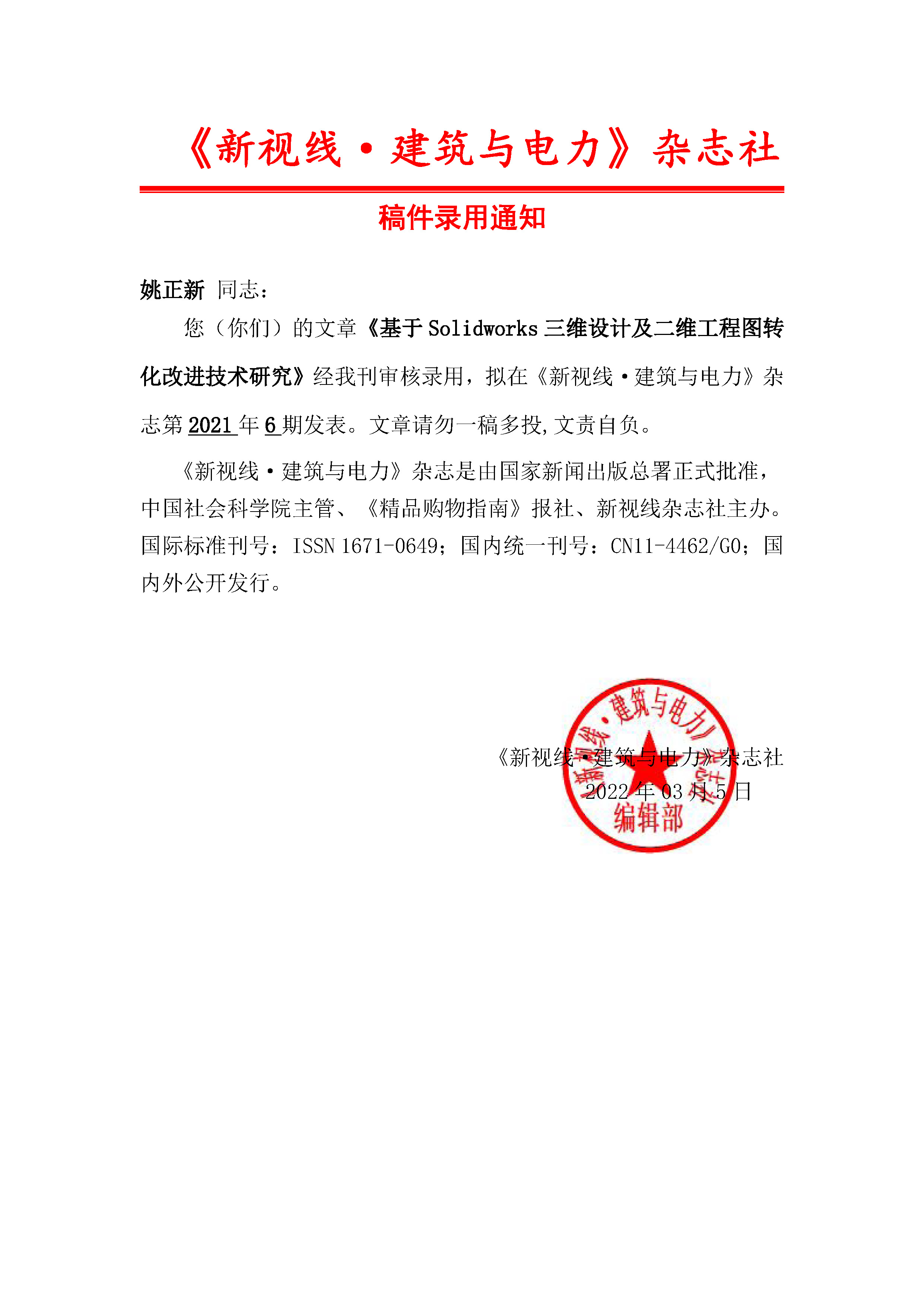 我公司姚正新同志通過(guò)了2022年度工程系列中級(jí)職稱評(píng)審網(wǎng)上申報(bào),為進(jìn)一步增強(qiáng)工作透明度,自2022年8月1日至2022年8月10日對(duì)姚正新同志進(jìn)行為期10個(gè)工作日的公示。