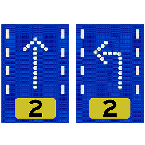 車道指示標(biāo)志用于發(fā)布進(jìn)口車道的左轉(zhuǎn)、直行、右轉(zhuǎn)、調(diào)頭等指示信息,