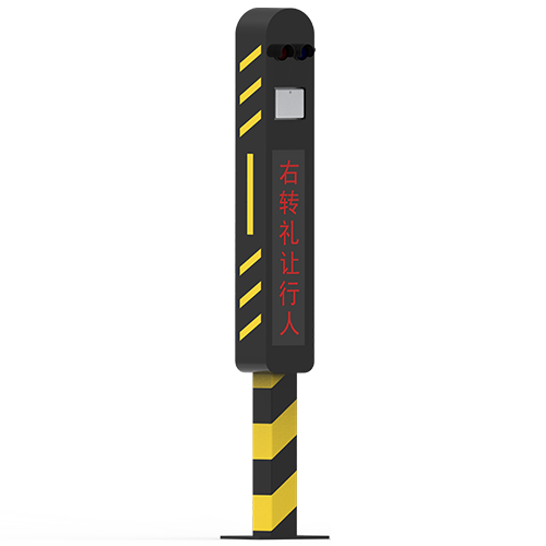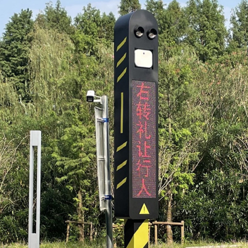 模組信息屏,用于對右轉(zhuǎn)車道的司機進行文字預警及宣導,右轉(zhuǎn)盲區(qū)風險低,則顯示右轉(zhuǎn)禮讓行人;右轉(zhuǎn)盲區(qū)存在沖突目標,則警示注意右行人;